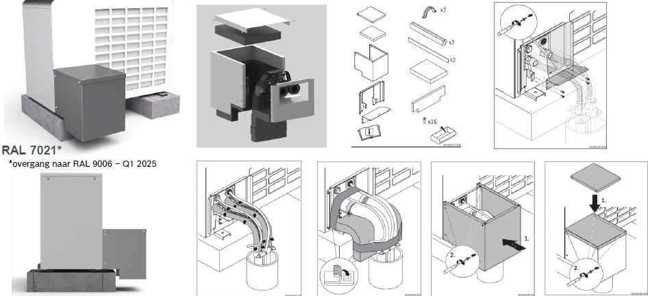 Uitvoering voor vloerverbinding inclusief isolatie conform GEG-normen, met montageframe voor buitenunits AW OR-S/T