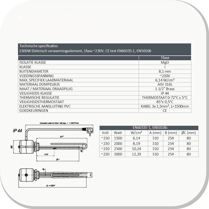 1-Fase Verwarmingselementen (1,5kW – 3kW)