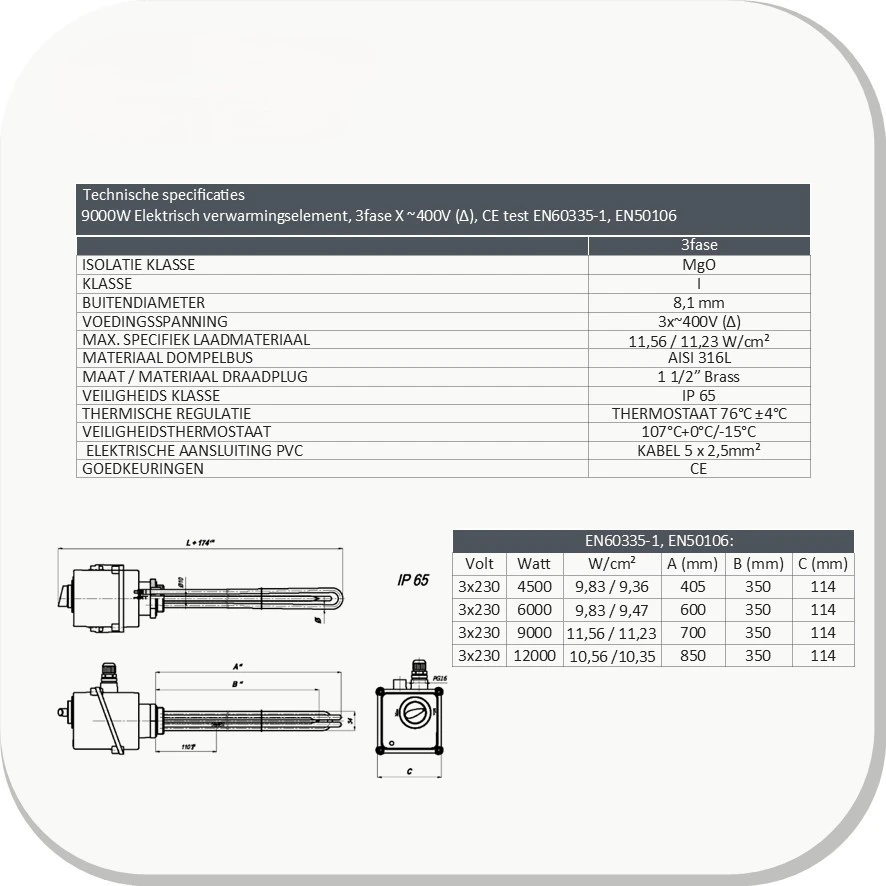 3-Fase Verwarmingselementen (4,5kW – 12kW)