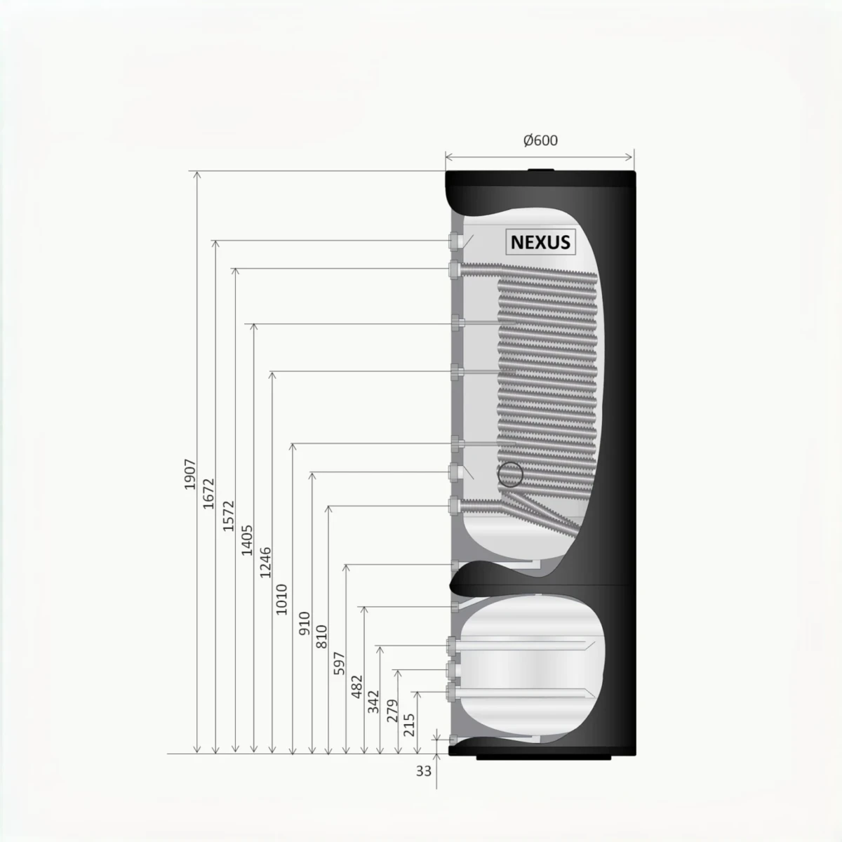 De PDWT is ontworpen voor warmtepompsystemen volgens het doorstroomprincipe en combineert twee functies in één opslagtank.