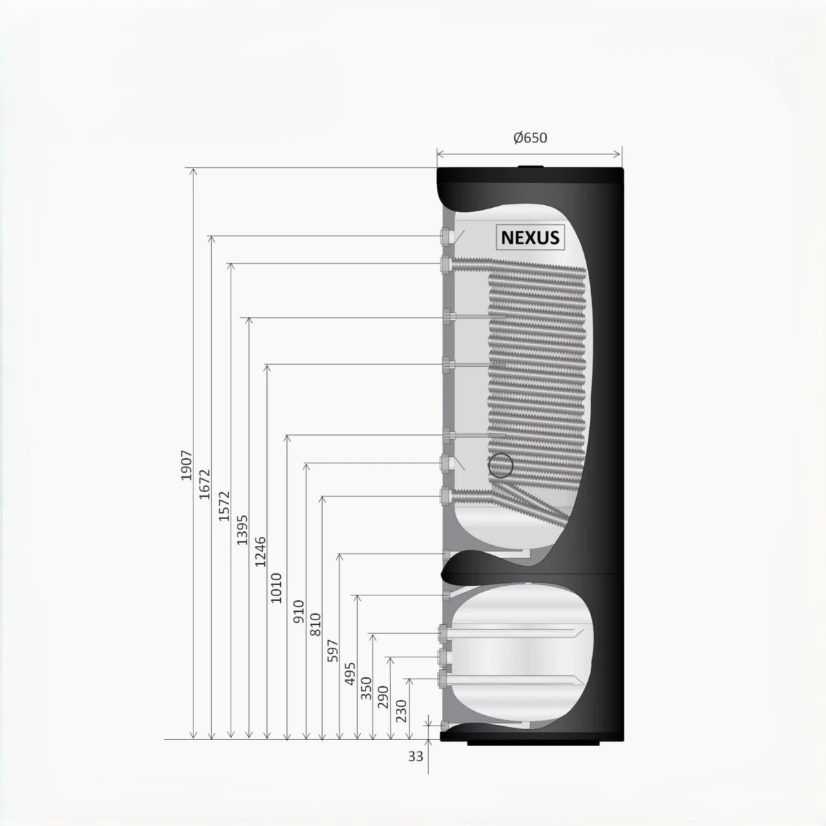 Buitentank: Ø 650 mm, gefrost staal