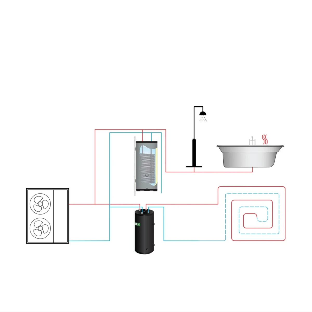 - Warmtewisselaar: Wave roestvrij staal (RVS), 15 meter lang, Ø 28 mm