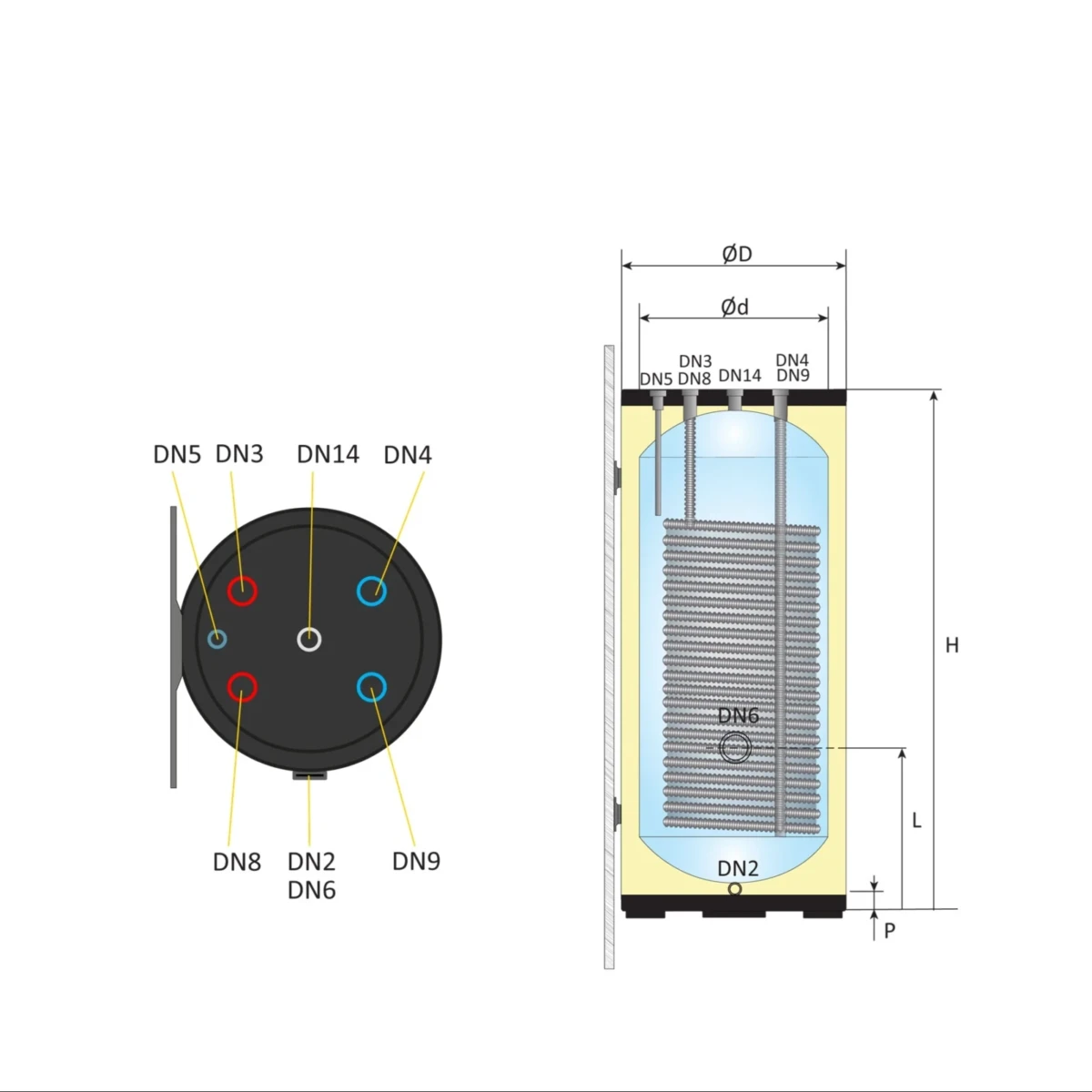 - Binnentank: Ø 470 mm, 1,0 mm Duplex 2205 RVS