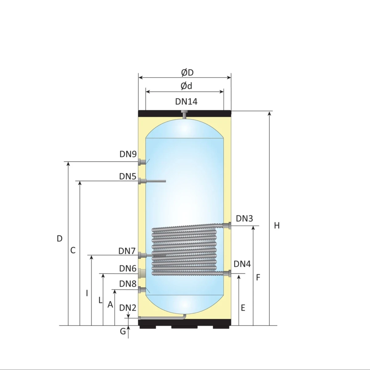 - Buitenmantel: Ø 700 mm, gegalvaniseerd frosted staal