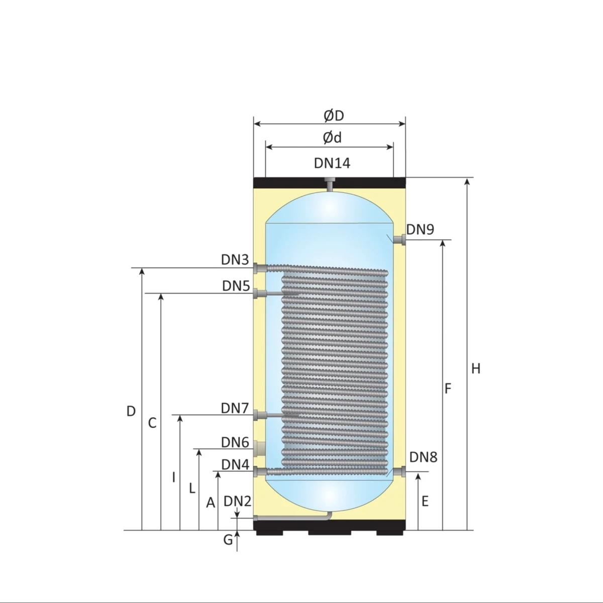 - Binnentank: Ø 600 mm, 1,0 mm Duplex 2205 RVS