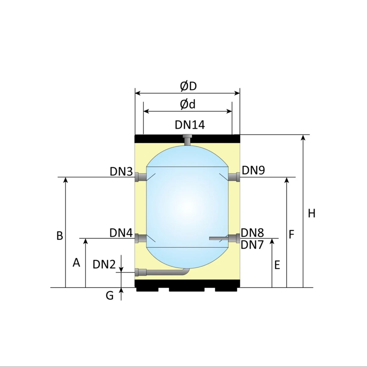Door het compacte formaat en de mogelijkheid tot wandmontage is deze buffertank bijzonder geschikt voor installaties met beperkte ruimte.