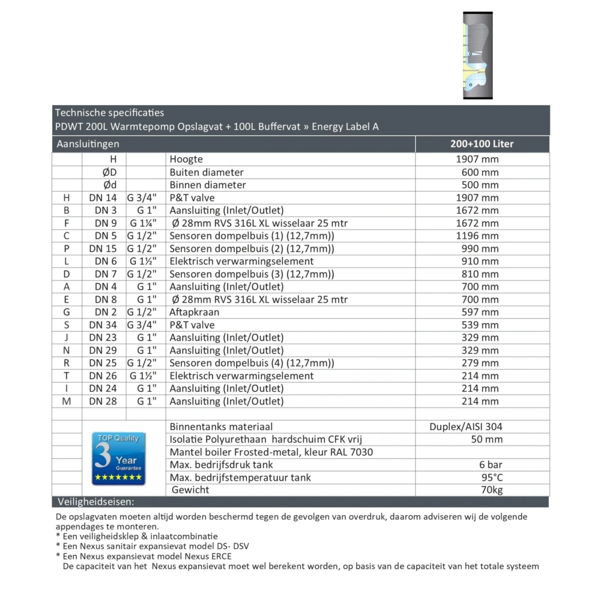 PDWT – 2-in-1 Hygiëneboiler & Buffer voor Warmtepompsystemen (20 mtr uitvoering)